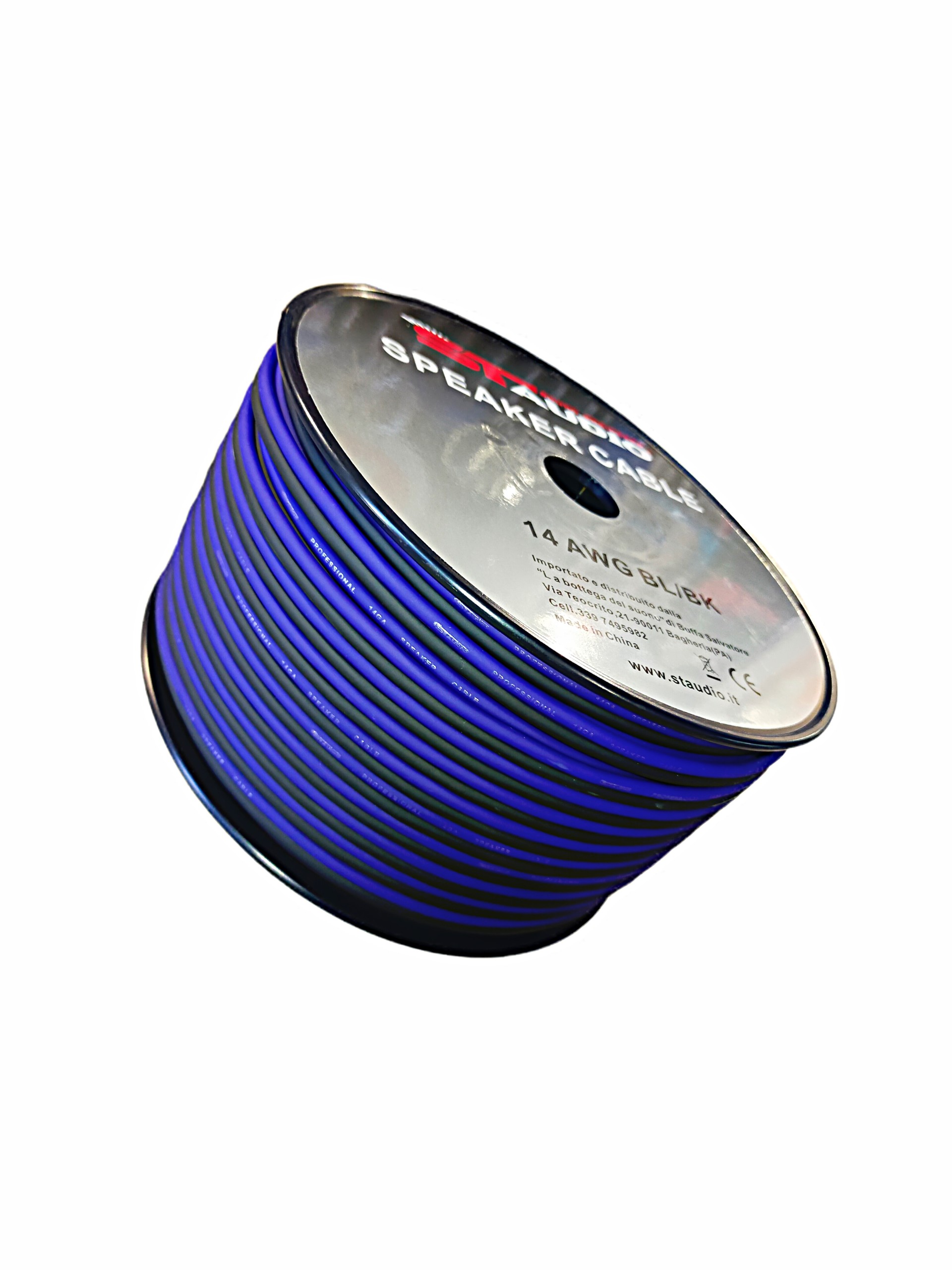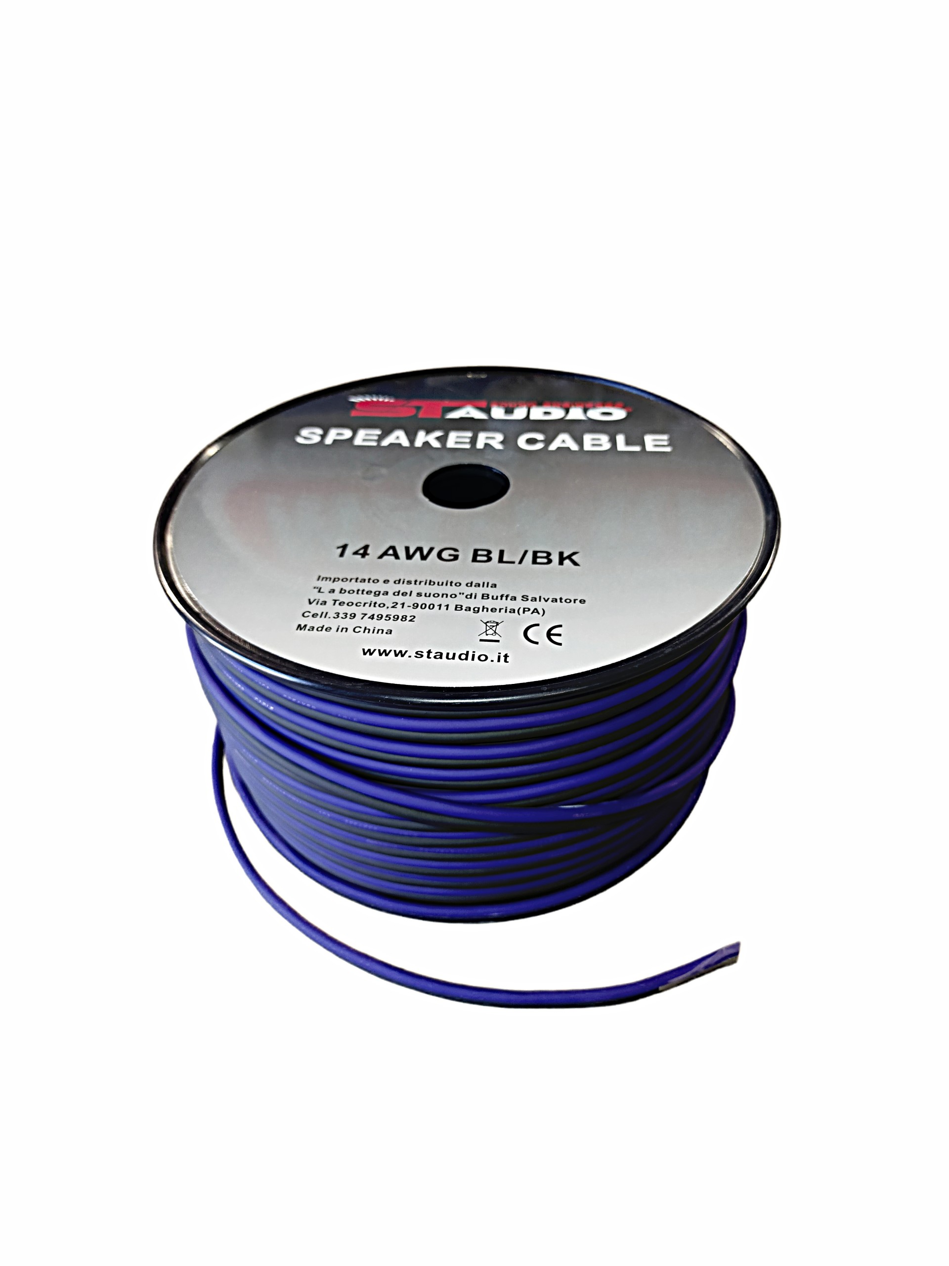 CAVO ALTOPARLANTE STAUDIO 2X3mm. PREZZO AL METRO Colore BLU e NERO Anima interna del cavo CCA 50% OFC 50% RIVESTIMENTO in PVC satinato Lunghezza BOBINE INTERA 100 METRI Cablaggi Per interni ed esterni per apparecchi elettronici Cablaggi per altoparlanti automobili Car audio
